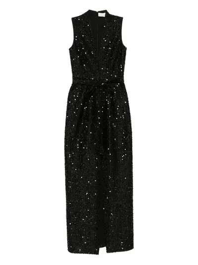 black rear zip fastening sequin embellishment V-neck sleeveless