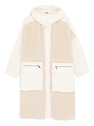 beige classic hood front zip-fastening pockets front concealed fastening long sleeves