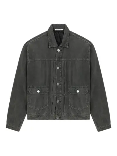grey corduroy spread collar front button fastening front flap pockets buttoned cuffs