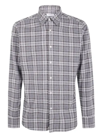 anthracite grey check pattern front button fastening long sleeves buttoned cuffs classic collar