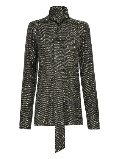 black and white tie-neck long sleeves buttoned cuffs