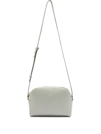 glacier grey leather top zip fastening adjustable shoulder strap topstitch detailing gold-tone logo