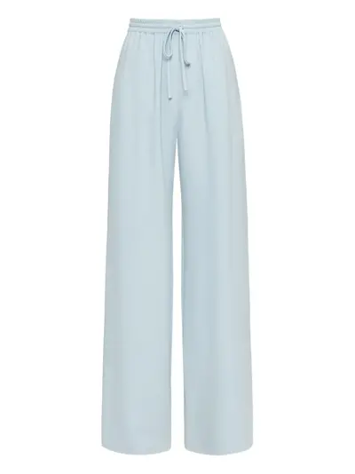 sky blue drawstring waist elasticated waistband georgette texture wide leg side seam pockets