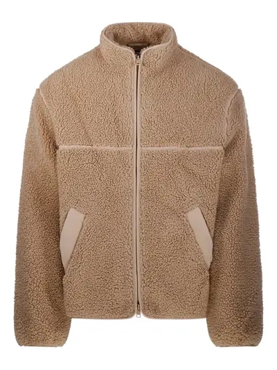 beige fleece texture zip fastening high neck patch pocket panelled design