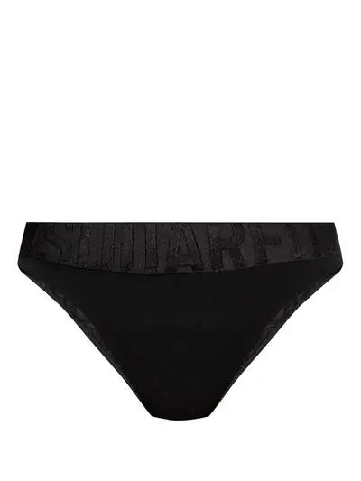 black medium coverage logo detail elastic waist Just a reminder that this piece must be tried on over your own garments.