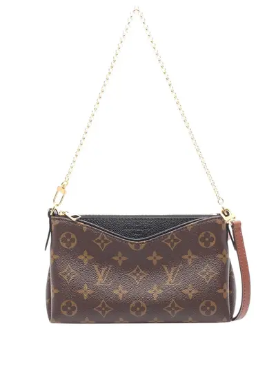 monogram canvas body exterior pockets gold-tone chains detachable flat shoulder strap top zip closure interior slip pocket brown Serial Number: CA4116 Inclusions: shoulder strap. Condition: EXCELLENT. This previously owned item is in near-perfect condition with no signs of damage or use. Due to the exclusivity of this item and its limited availability, processing and delivery might take longer than usual. Please refer to the photos on this product page for a detailed view of the item, including any damages declared.