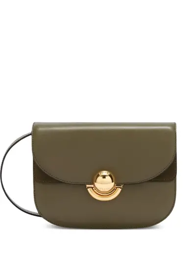 green curved flap gold-tone clasp adjustable shoulder strap leather