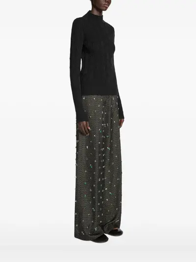 black cable knit high neck long sleeves ribbed hem ribbed cuffs