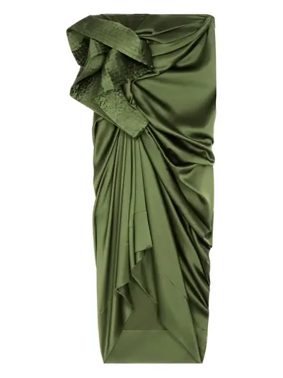 green draped design asymmetric hem midi length
