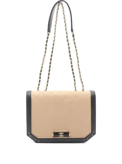 2017-2018 beige black accents gold-tone hardware chain strap quilted interlocking CC logo detail Condition: GOOD. This previously owned and used item is in good condition with minimal signs of use. This may include fading of material or plating and scratches. This item comes with an original authenticity seal.