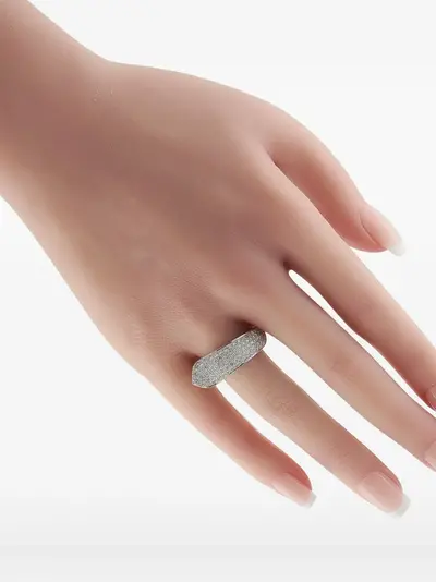 silver-tone 18k white gold pavé-set round-cut diamonds 6 mm band width 12 mm top height gift box Your purchase will arrive with a gift box. Normal everyday use and external agents may reduce the lustre of gemstones and gold surfaces. To maintain, use specific, non-abrasive products specially meant for cleaning jewellery. Condition: EXCELLENT. This previously owned item is in near-perfect condition with no signs of damage or use.