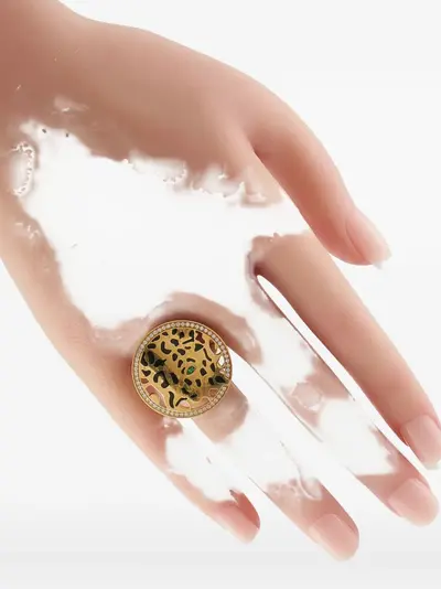 gold-tone 18k yellow gold pavé-set round-cut diamonds 2 mm band width 4 mm top height feline design circular setting Your purchase will arrive with a gift box. Normal everyday use and external agents may reduce the lustre of gemstones and gold surfaces. To maintain, use specific, non-abrasive products specially meant for cleaning jewellery. Condition: EXCELLENT. This previously owned item is in near-perfect condition with no signs of damage or use.