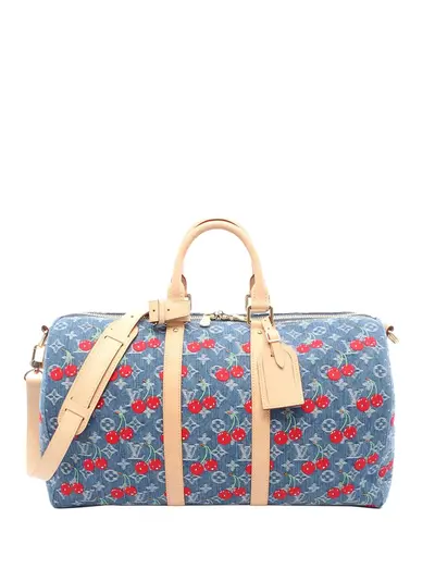 Monogram Cherry Denim body rolled vachetta handles detachable strap top zip closure interior zip pocket blue Inclusions: padlock, key, name tag, shoulder strap. Condition: EXCELLENT. This previously owned item is in near-perfect condition with no signs of damage or use. Due to the exclusivity of this item and its limited availability, processing and delivery might take longer than usual. Please refer to the photos on this product page for a detailed view of the item, including any damages declared.