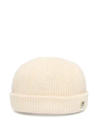 beige ribbed knit logo patch