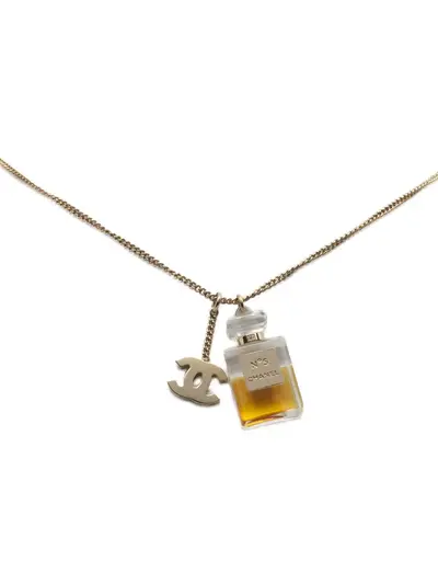 gold-tone chain resin fragrance bottle charm gold-tone CC logo pendant spring ring closure gold Serial Number: 04A Inclusions: box. Condition: GOOD. This previously owned and used item is in good condition with minimal signs of use. This may include fading of material or plating and scratches. Due to the exclusivity of this item and its limited availability, processing and delivery might take longer than usual. Please refer to the photos on this product page for a detailed view of the item, including any damages declared.