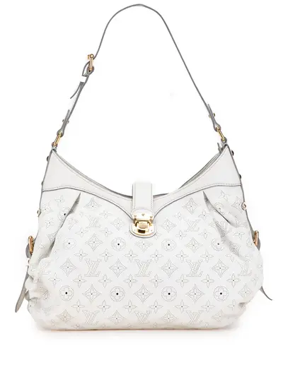 mahina leather body adjustable flat leather shoulder strap front strap with a push lock closure top zip closure interior slip pockets white Serial Number: AR1008 This item has no inclusions. Condition: EXCELLENT. This previously owned item is in near-perfect condition with no signs of damage or use. Due to the exclusivity of this item and its limited availability, processing and delivery might take longer than usual. Please refer to the photos on this product page for a detailed view of the item, including any damages declared.