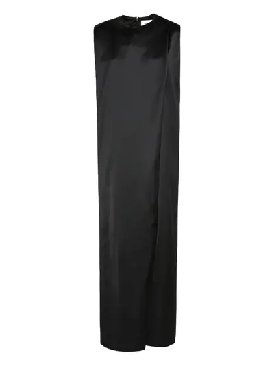 black wool satin sleeveless maxi length round neck concealed back zip fastening