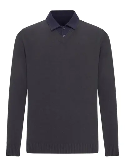 anthracite grey contrast collar v-neck long sleeves ribbed trims buttoned placket