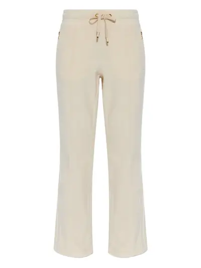 cream side zip pockets drawstring fastening gold-tone hardware piped trim