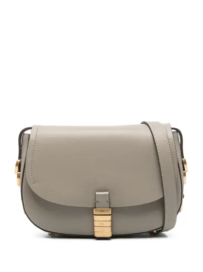 grey front flap closure adjustable shoulder strap This piece comes complete with a protective dust bag.