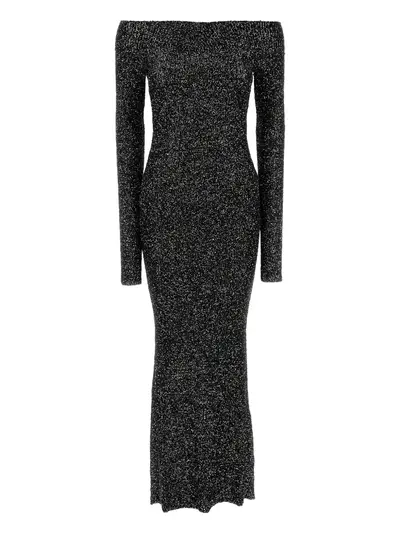 black knit off-the-shoulder long sleeves embellishment