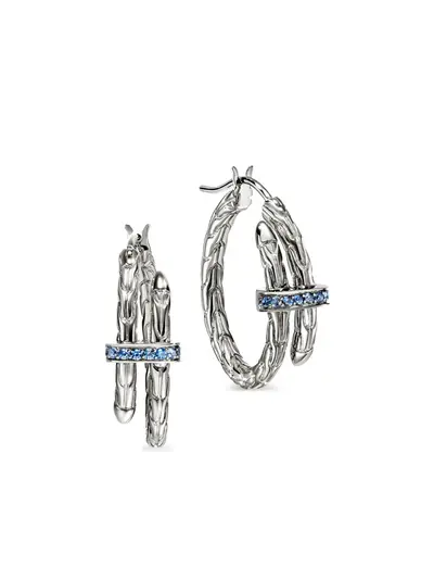 silver-tone sterling silver pavé-set round-cut sapphires hoop style textured finish latch fastening Normal everyday use and external agents may reduce the lustre of gemstones and gold surfaces. To maintain, use specific, non-abrasive products specially meant for cleaning jewellery. These earrings come as a pair.