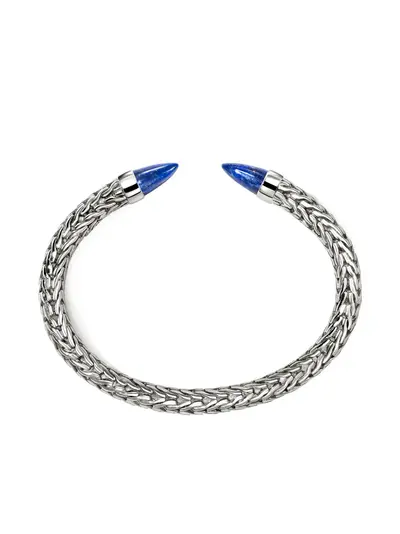 silver-tone sterling silver bazel-set lapis lazuli embellishments woven design open cuff polished finish Normal everyday use and external agents may reduce the lustre of gemstones and gold surfaces. To maintain, use specific, non-abrasive products specially meant for cleaning jewellery.