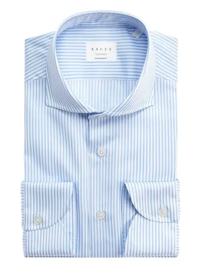 light blue striped pattern button fastening classic collar buttoned cuffs