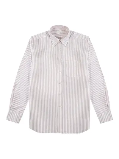 white and brown striped pattern button-down collar chest pocket long sleeves buttoned cuffs