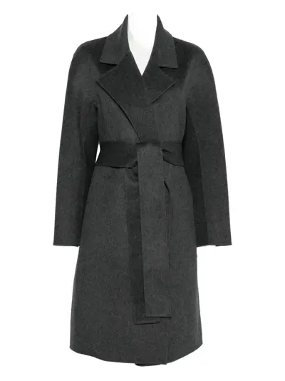 grey notched lapels belted waist long sleeves v-neck wrap style