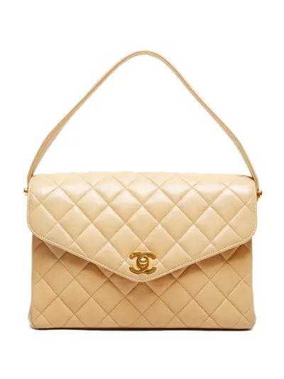 1996-1997 beige matelasse design gold-tone logo top handle flap top internal zip pocket Serial Number: 4809024 Condition: GOOD. This previously owned and used item is in good condition with minimal signs of use. This may include fading of material or plating and scratches.