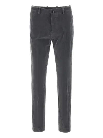 grey striped pattern velvet finish belt loops side pockets rear welt pockets button fly fastening