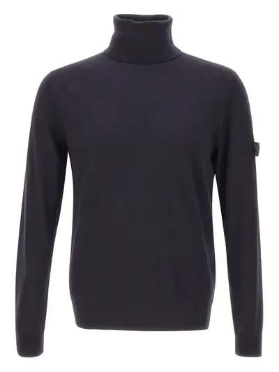 navy blue ribbed knit details logo patch long sleeves high collar rib-knit hem