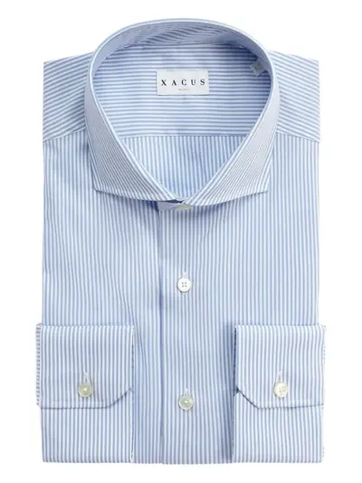 light blue striped button fastening buttoned cuffs classic collar