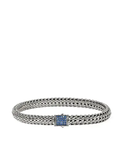 sterling silver woven chain sapphire embellishment round cut pave setting square detail clasp fastening Normal everyday use and external agents may reduce the lustre of gemstones and gold surfaces. To maintain, use specific, non-abrasive products specially meant for cleaning jewellery.