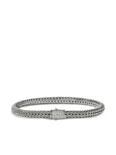 silver-tone sterling silver woven design pavé-set round-cut diamonds totaling 0.15cts square buckle fastening Normal everyday use and external agents may reduce the lustre of gemstones and gold surfaces. To maintain, use specific, non-abrasive products specially meant for cleaning jewellery.