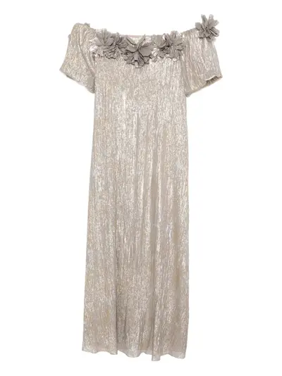 beige floral embroidery to the front off-shoulder elasticated cuffs