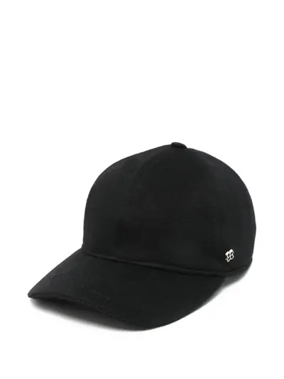 black logo plaque adjustable strap buckle fastening curved peak top button
