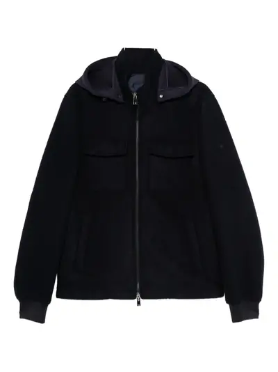blue classic hood front zip fastening front welt pockets long sleeves ribbed cuffs