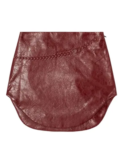 brown textured finish embossed motif high-low hem side zip fastening mini length