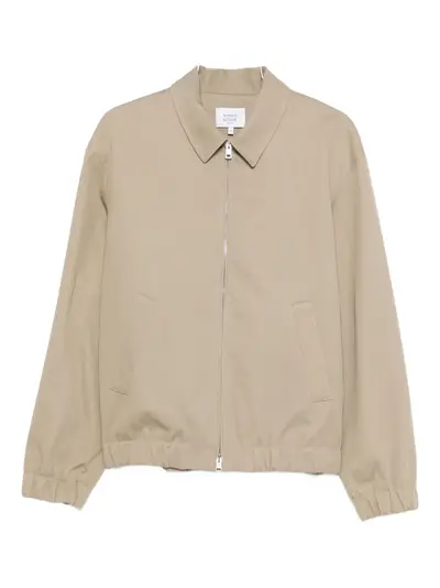 beige two-way zip fastening point collar elasticated hem side welt pockets long sleeves