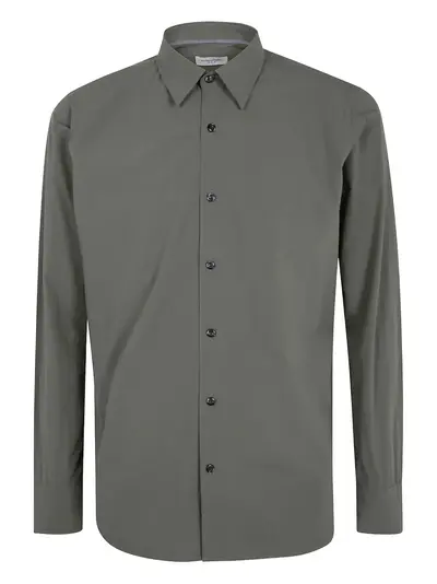 grey front button fastening long sleeves buttoned cuffs classic collar
