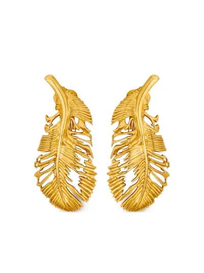 gold-tone feather design for pierced ears These earrings come as a pair.