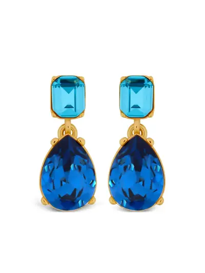 light sapphire teardrop gems square gems gold-tone hardware drop style These earrings come as a pair.