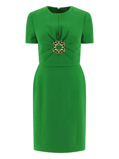 green short sleeves gold-tone jewel embellishment jewel-embellished neckline fitted bodice concealed zip fastening