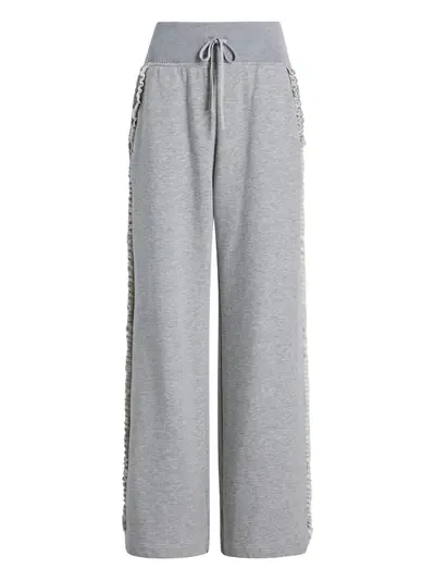 heather grey ruffles rhinestone embellishment drawstring fastening ribbed waistband side pockets