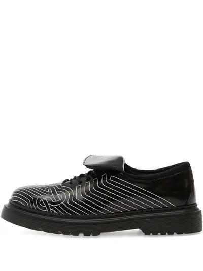 black topstitched detailing front lace-up fastening gold-tone detailing perforated detailing ridged sole