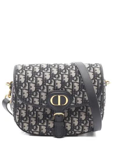 2010s beige/blue Oblique monogram pattern leather trim detachable adjustable shoulder strap gold-tone hardware internal slip pocket Condition: GOOD. This previously owned and used item is in good condition with minimal signs of use. This may include fading of material or plating and scratches.