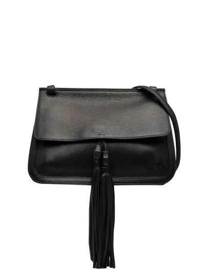 leather body with bamboo-accented leather tassels adjustable flat leather strap front flap with magnetic snap closure interior zip and slip pockets black Serial Number: 370826 002123 This item has no inclusions. Condition: EXCELLENT. This previously owned item is in near-perfect condition with no signs of damage or use. Due to the exclusivity of this item and its limited availability, processing and delivery might take longer than usual. Please refer to the photos on this product page for a detailed view of the item, including any damages declared.