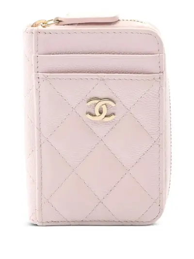 2021-2022 light pink gold-tone hardware caviar skin quilted zip fastening card slots